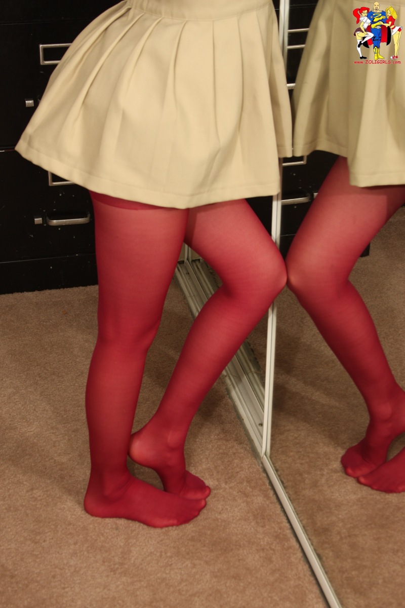 Today’s second update of the day features one of the new girls from Zolgirls. This free pantyhose gallery features Jackie in a beige schoolgirl uniform over her burgundy top as well as her coloured pantyhose. This tall, fit model has a great set of legs and as she removes her school outfit, you’ll get a nice view of the rest of her body as well. Her matching bra and panty set are black with polka dots and kind of matches the nylons she’s wearing. The other thing that you’ll notice are her hot feet in pantyhose, something I know a lot of you really enjoy seeing. Enjoy the free gallery and don’t forget to drop by Zoligirls to see more of Jackie and their other cute models in schoolgirl and cheerleader uniforms.