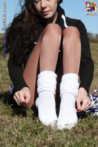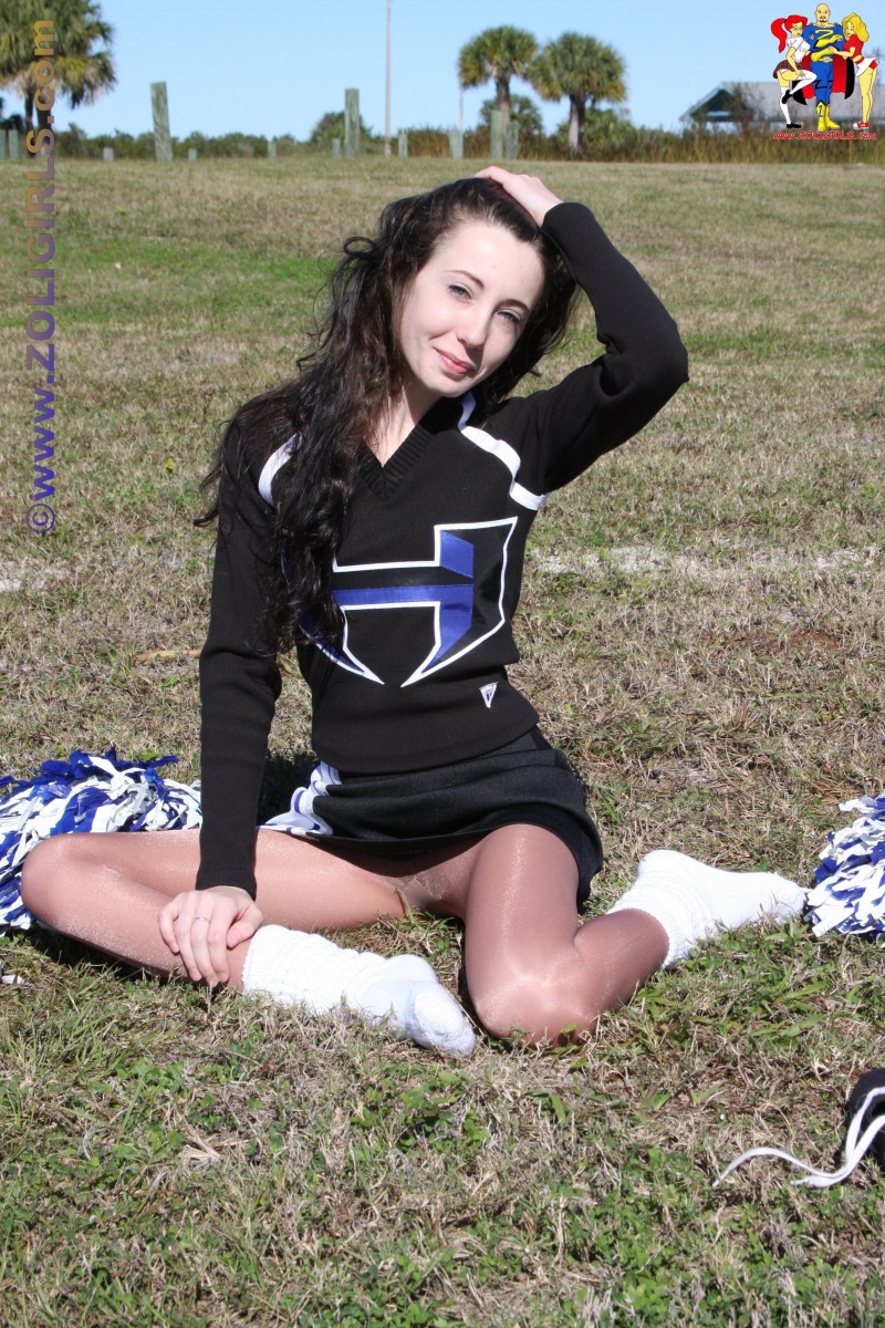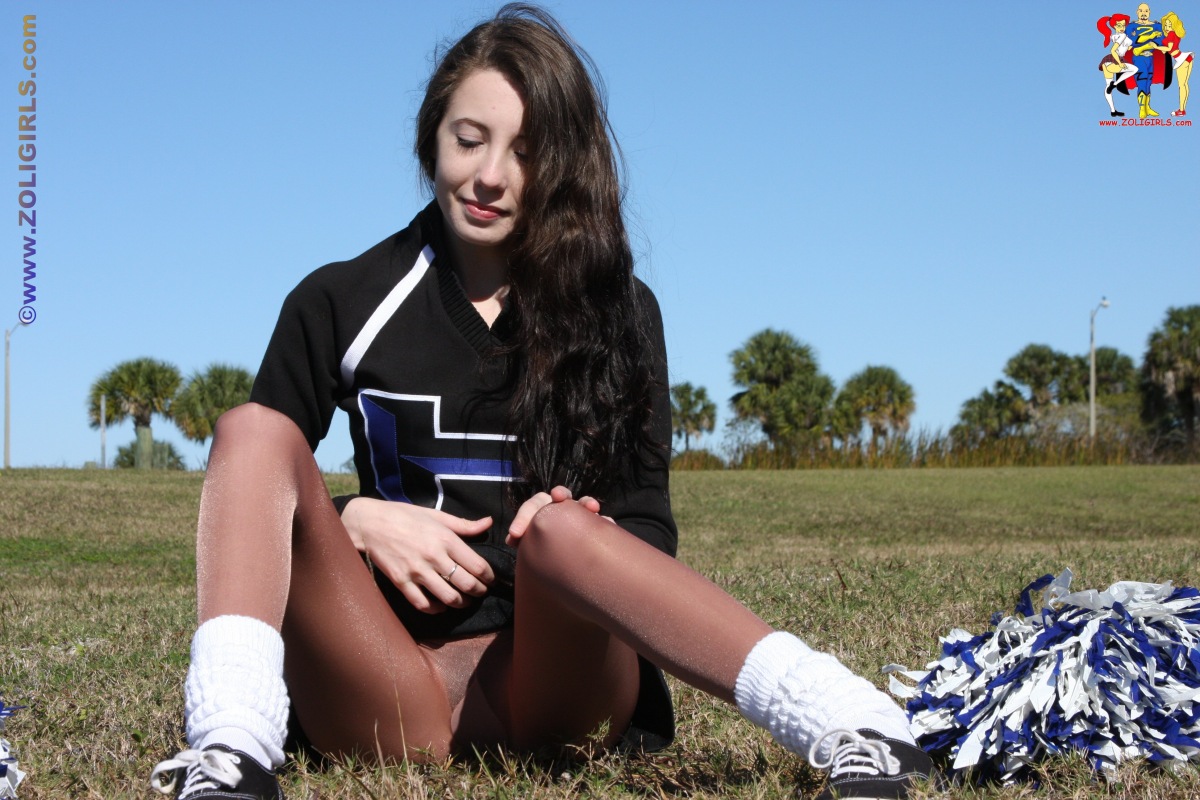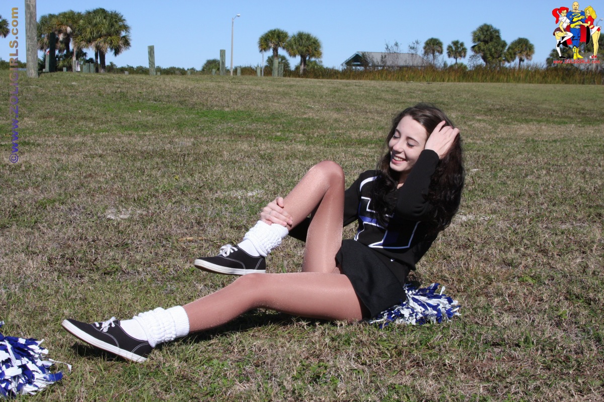 CThe beautiful Jackie from Zoligirls graces us with these lovely cheerleader pantyhose pictures from the site. This cutie is practising her cheer routine in the field while wearing a black uniform with socks and shiny pantyhose. Jackie puts down her pom poms for a few moments to rest and gives us a quick peek up her short miniskirt. This beautiful leg model pulls off her sneakers and shoes to tease us with her cute feet in nylons. If you’re a fan of amateur models in uniforms and pantyhose, we highly recommend you head over to Zoligirls and check out all the amazing videos and images available at the site.