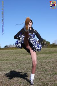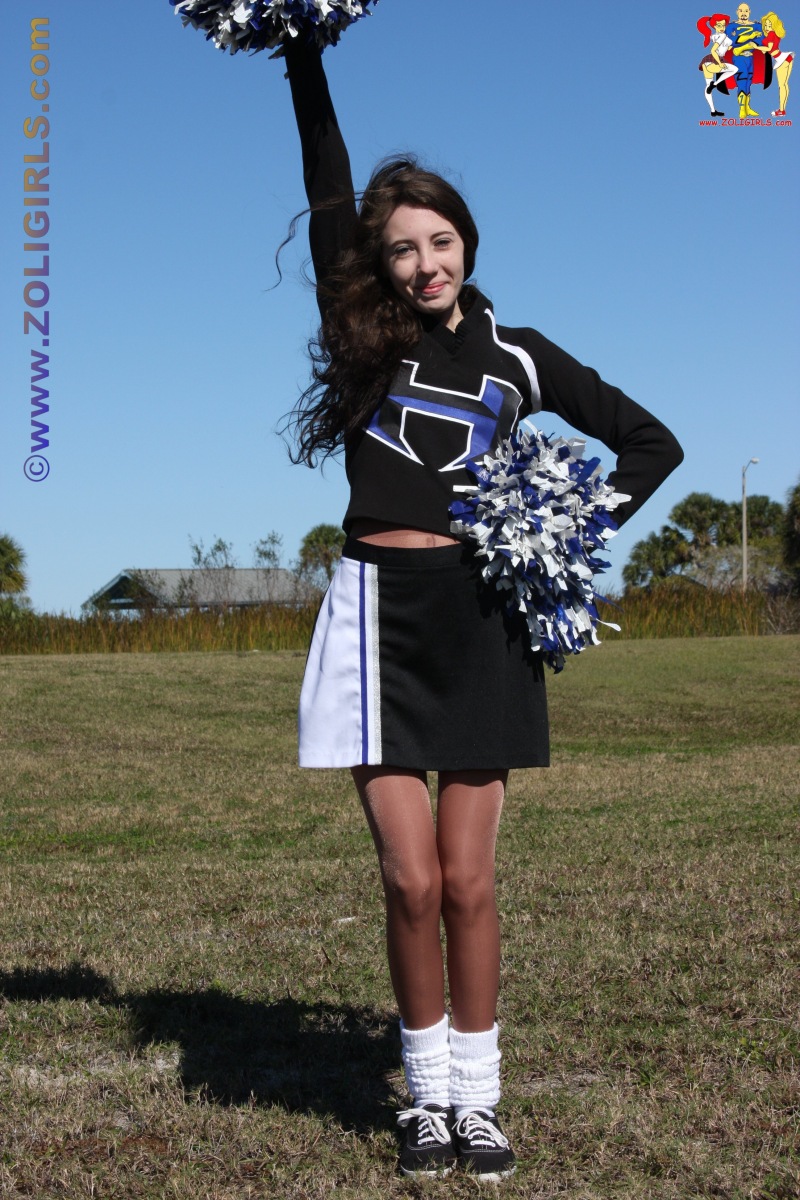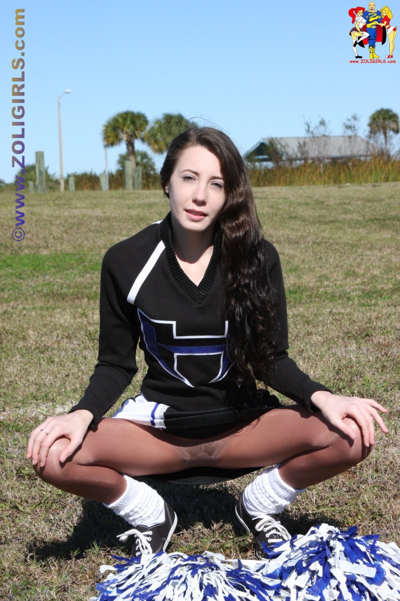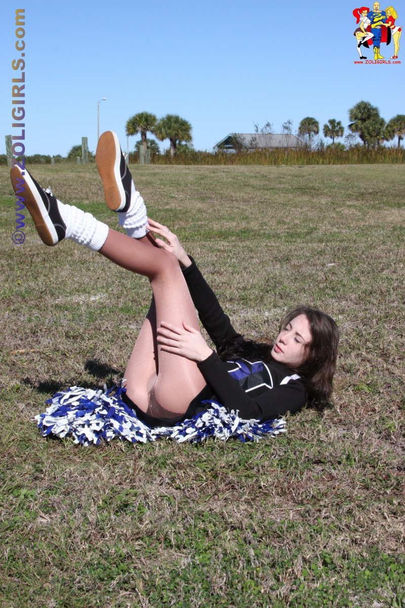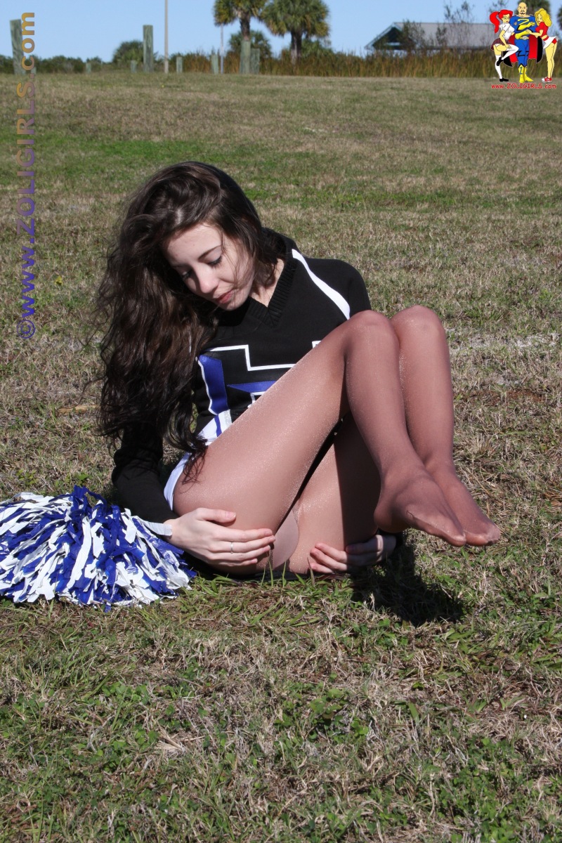 CThe beautiful Jackie from Zoligirls graces us with these lovely cheerleader pantyhose pictures from the site. This cutie is practising her cheer routine in the field while wearing a black uniform with socks and shiny pantyhose. Jackie puts down her pom poms for a few moments to rest and gives us a quick peek up her short miniskirt. This beautiful leg model pulls off her sneakers and shoes to tease us with her cute feet in nylons. If you’re a fan of amateur models in uniforms and pantyhose, we highly recommend you head over to Zoligirls and check out all the amazing videos and images available at the site.
