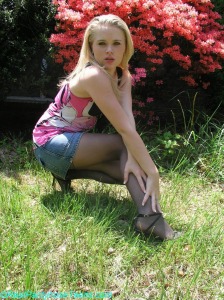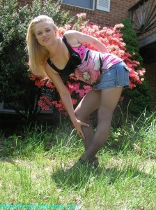 I haven’t popped into the member’s area of REAL PANTYHOSE TEENS in a while and I was pleasantly surprised by some of their recent content. The biggest surprise for me was this particular model as she is just plain gorgeous! Her name is Mercedes and she is looking killer in her short jean skirt with high heels and sheer pantyhose. This naughty blonde strips for the camera, revealing her small teen tits encased in a red bra and the control top portion of her nylons. What a hottie, eh? Let me know in the comment section below and if you want to see more of Mercedes and other cute amateur models in pantyhose, head on over to Real Pantyhose Teens today!