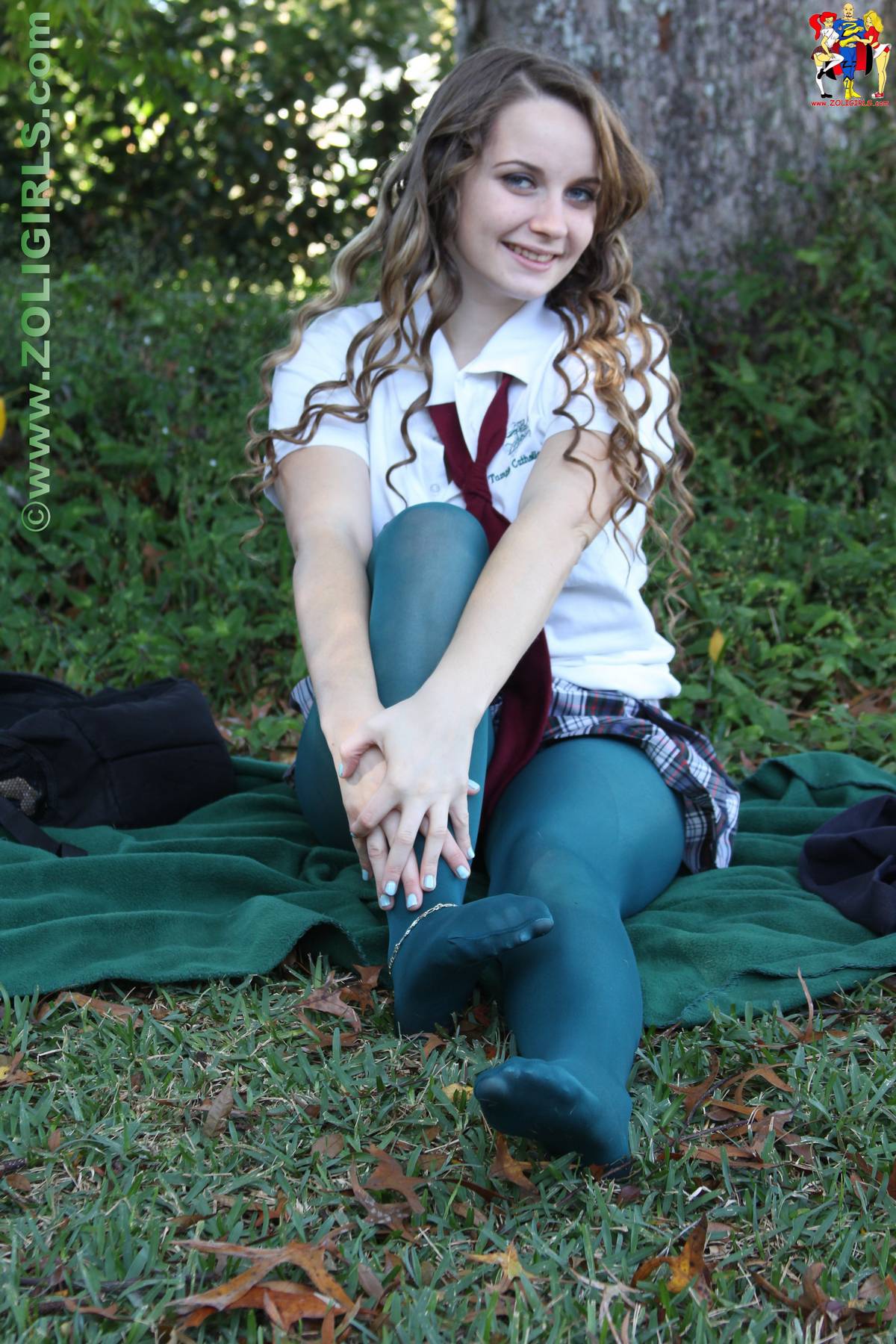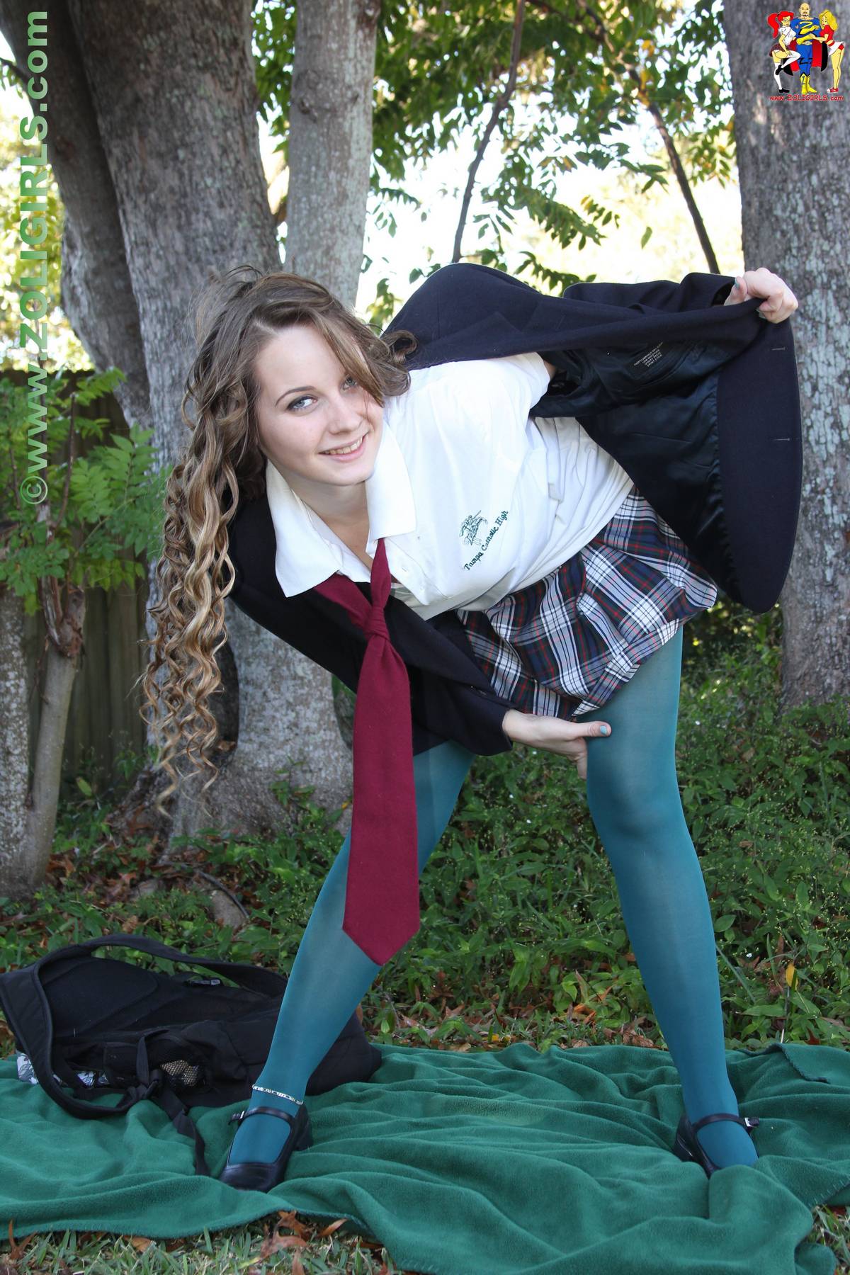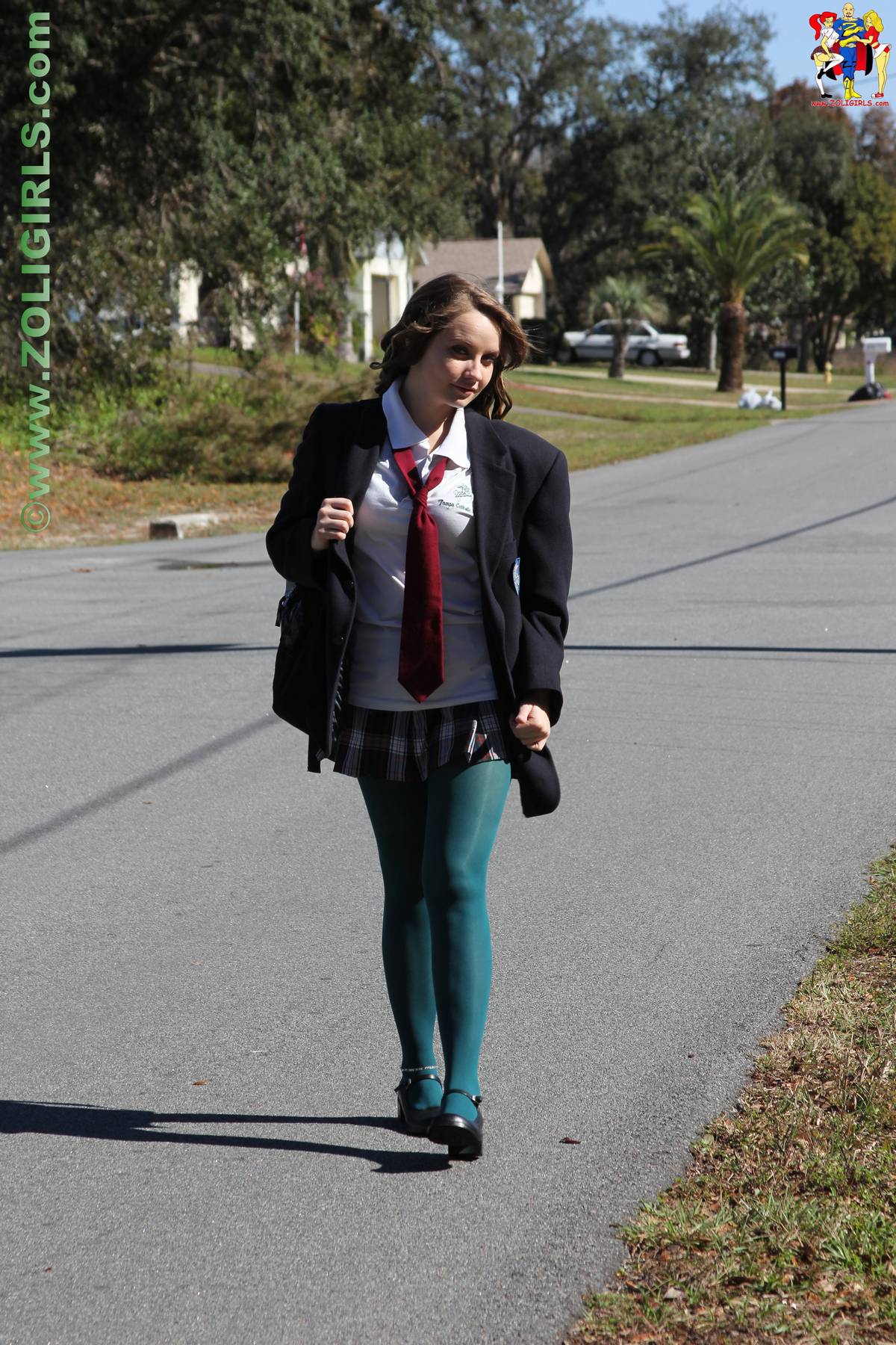 Angelica from ZOLIGIRLS is back and looking as cute and sexy as ever. This petite cutie is heading home from a long day at school in her schoolgirl uniform that consists of a short plaid skirt with maryjanes and green pantyhose. She finds a secluded spot where she can be rather naughty, lifting up her skirt and flashing her panties at the camera. Angelica slips off her shoes to tease us with her nylon clad feet. Her skirt also gets pulled up over her waist and she further teases us with that amazing teen ass of hers. Enjoy the free gallery and be sure to check out all the updates of this cute teen model over at Zolgirls!