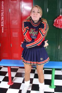 Hey folks… well, some good news and some bad news. I had a couple of people that were helping out with the blog but they’ve unfortunately decided to move onto bigger and better things. That’s the bad news and as you can tell, the blog has missed a couple of updates as a result. That’s the bad news. The good news is that I will be taking on the writing tasks again over the next few weeks until we get some new staff on board. If you’re interested in helping out, hit the ‘ol contact page on the left side. I haven’t had a chance to grab any new content from ZOLIGIRLS so I’ve reached into the archives and pulled out this curvy girl in her cheerleader uniform with socks and pantyhose. She’s in the locker room looking very hot in her outfit and even better as she starts stripping. There’s a shot where she has her back turned to the camera and is lifting up her skirt that should grab your attention! Enjoy!