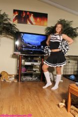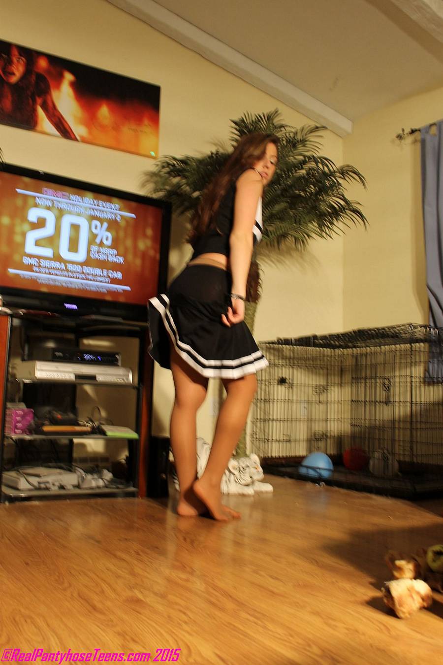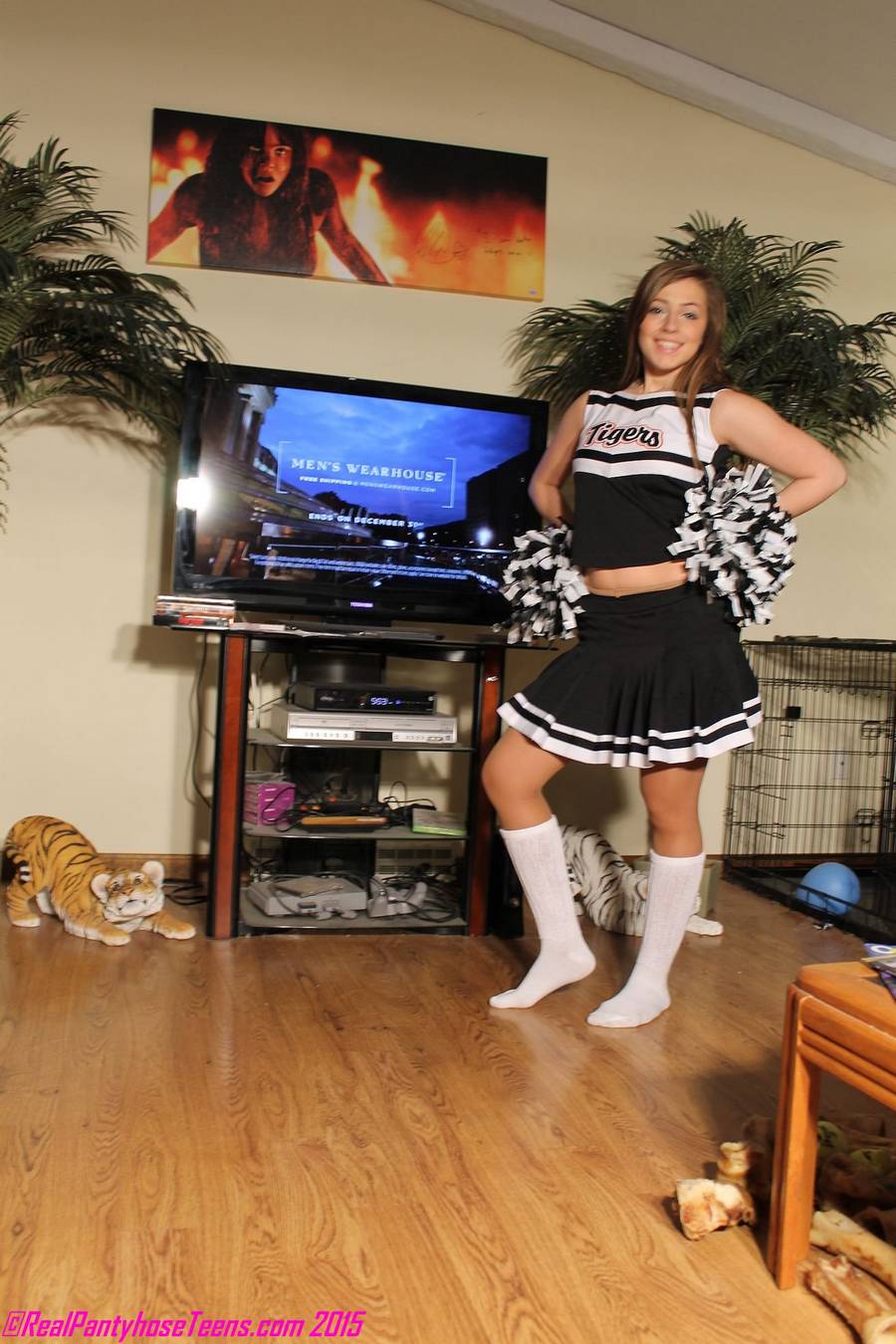 If you’re a fan of cheerleader pantyhose pics like we are, you’re going to love this free gallery from REAL PANTYHOSE TEENS starring the beautiful Victoria Chase. We think these were grabs from a webcam show but could be completely mistaken. Regardless of the circumstance in which they were taken, they show this gorgeous amateur model in a sexy cheerleader uniform with long socks over her pantyhose. When she slides off the skirt and the tight booty shorts she is wearing underneath, you’ll get a pretty decent look at her lovely ass in nylons and g-string panties. She also poses in her bra and pantyhose to tease us even further! Enjoy the free gallery and if you’d like to see more of Victoria and other sexy amateur models in pantyhose, head on over to Real Pantyhose Teens today!