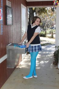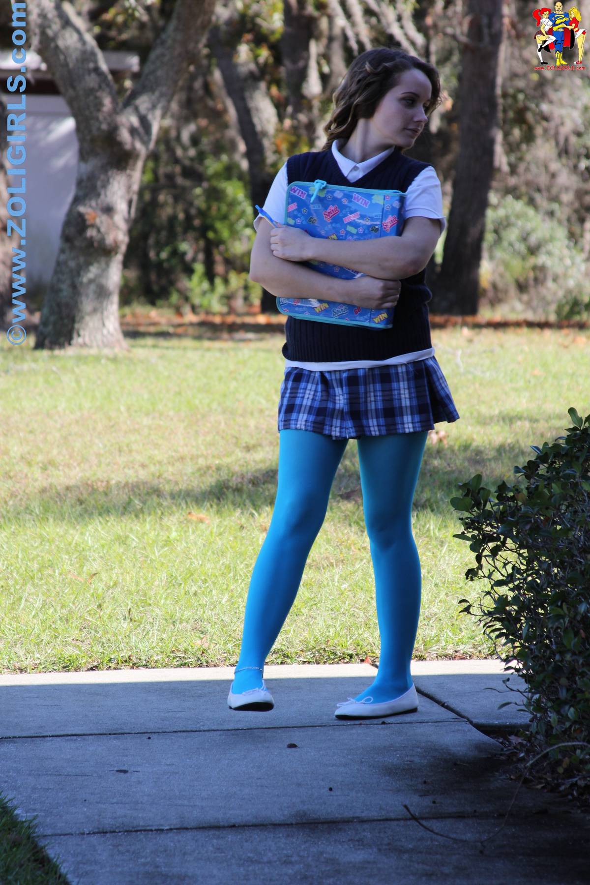 Welcome back to the blog folks and for your viewing enjoyment today we have some great schoolgirl pantyhose pictures of Angelica from ZOLIGIRLS. You’ll be seeing lots of her here at the site over the next couple of weeks as we love this gal and have built several galleries to share with everyone. Check out these fantastic pictures of Angelica out for a stroll in her schoolgirl uniform that includes a short plaid miniskirt with aqua blue opaque pantyhose and cute ballerine shoes. This teen cutie stops for a drink from the fountain, bending slightly at the waist. When she does this, her short skirt lifts and gives us a glimpse of her beautiful ass in tights. Next she hops up on the bleachers of the park and continues to tease us with her feet, legs and ass. Hope you folks enjoyed the gallery and if you’d like to see more of Angelica in schoolgirl and other sexy uniforms, head on over to Zoligirls today!