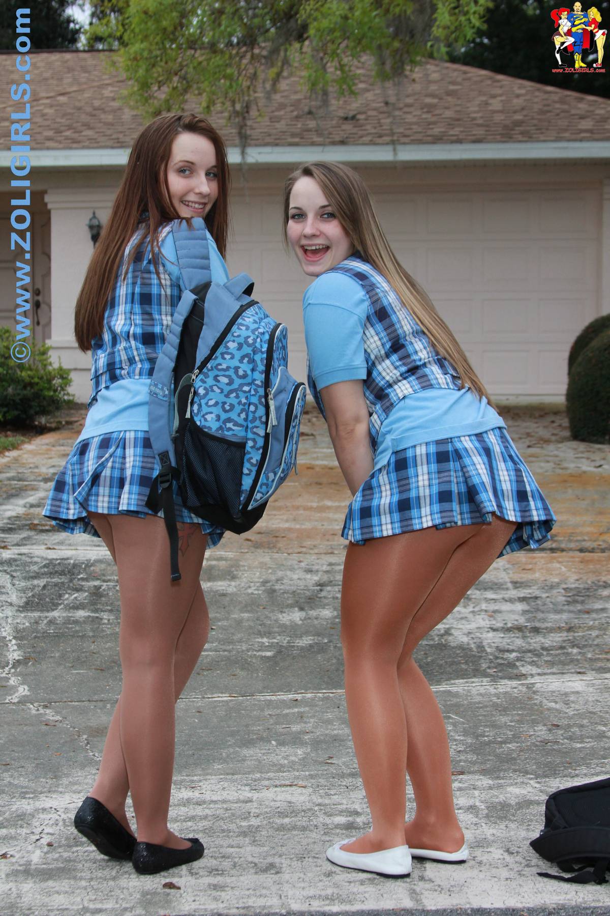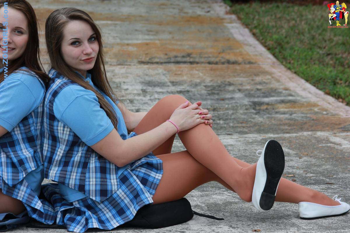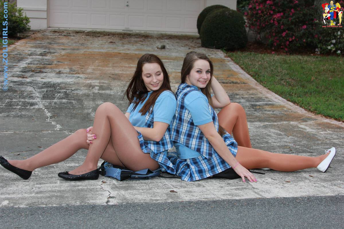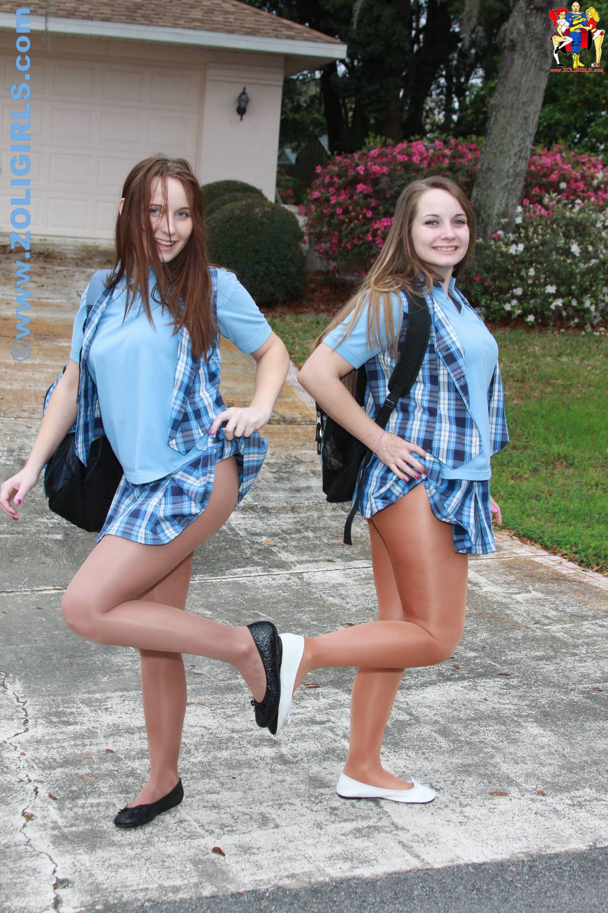 Check out this two adorable models from ZOLIGIRLS strolling down the street in their schoolgirl uniforms and pantyhose. Angelica and Britney are looking pretty sweet and sexy as they skip hand in hand while Zoli catches their amazing legs in the process. The shiny pantyhose look amazing, doesn’t it? Those short plaid skirts give us a great view which only improves when they tug up the bottom of it to give us a better look. Lots of tease shots and upskirt views for your viewing pleasure! Enjoy the free gallery and if you’d like to see more pantyhose videos and images of amateur teen models in their schoolgirl uniforms, be sure to head over to Zoligirls today!