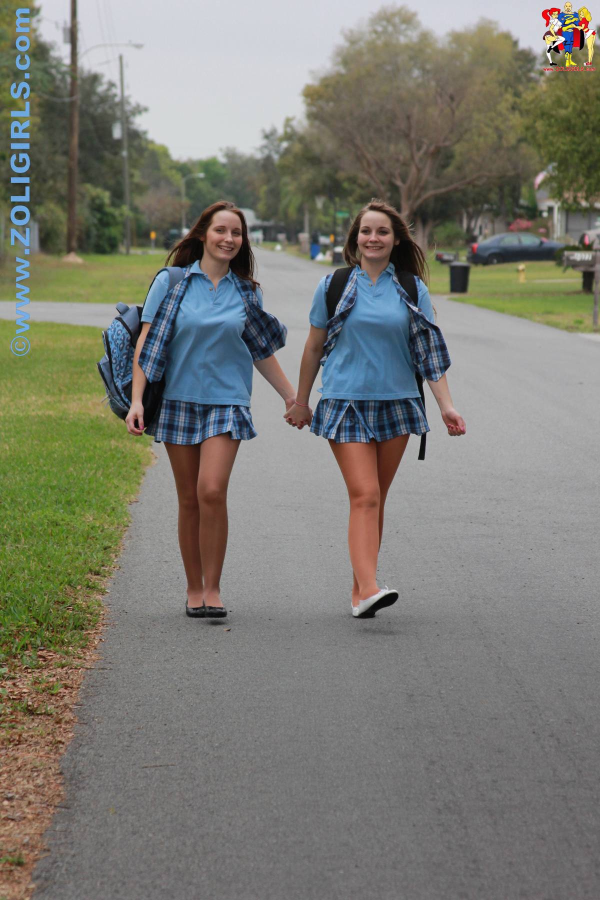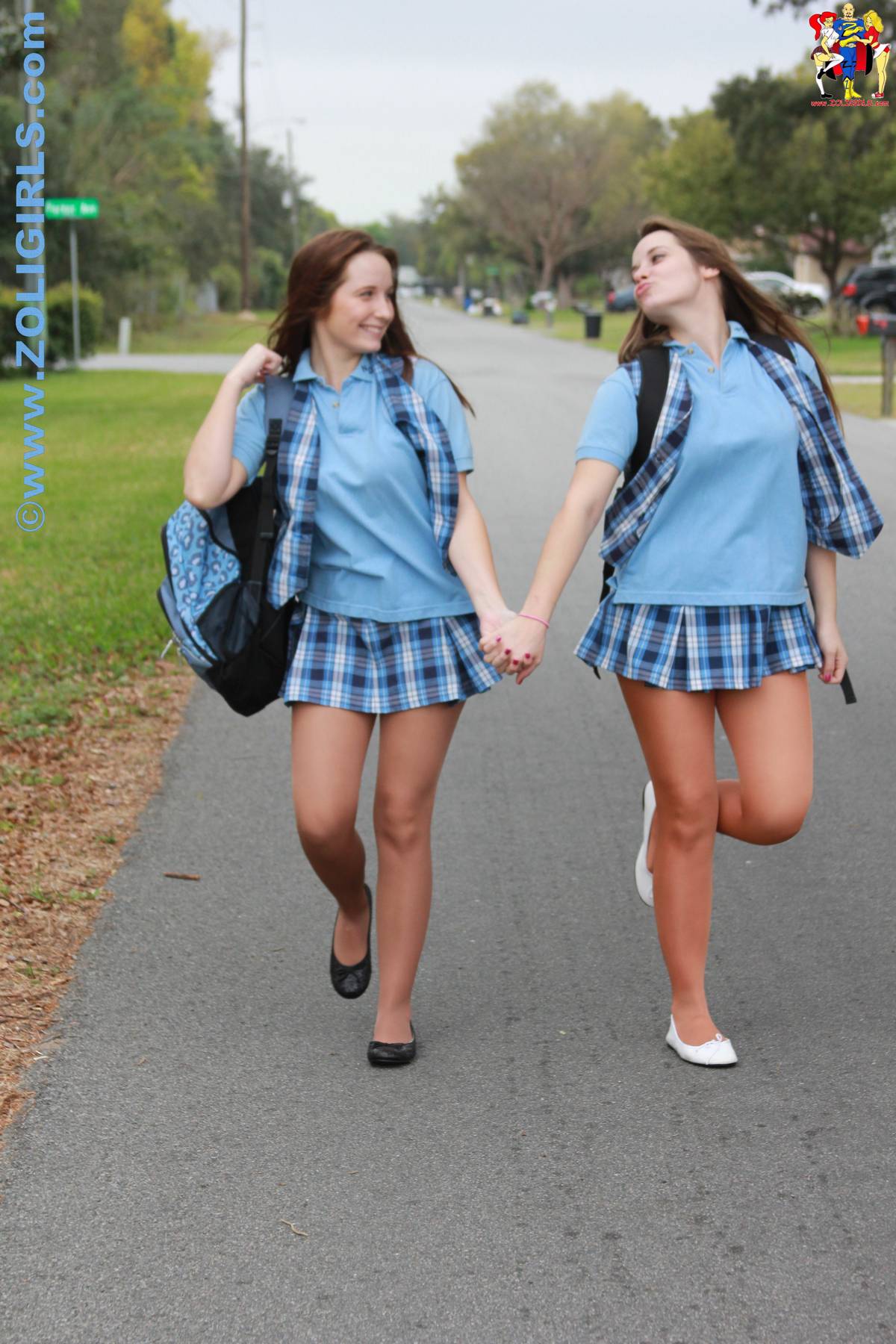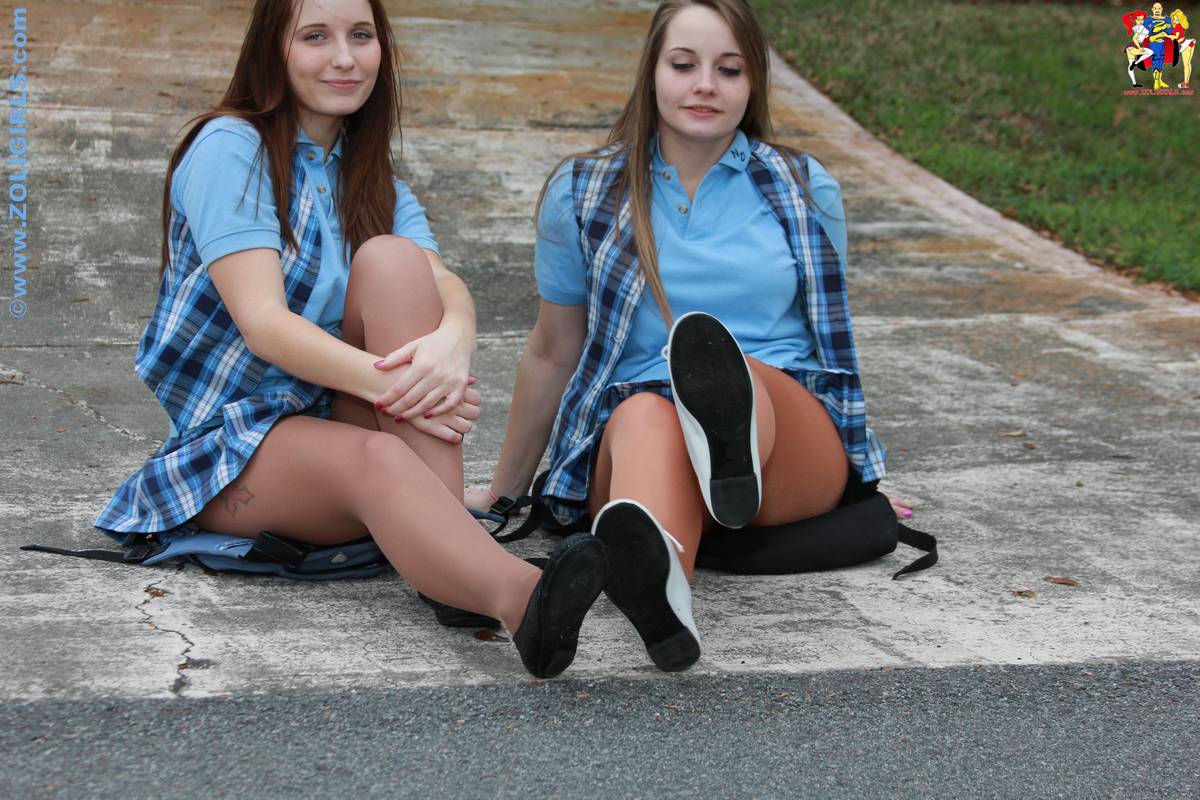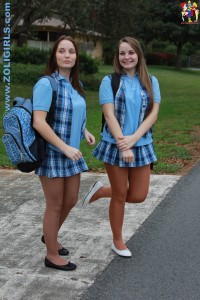 Check out this two adorable models from ZOLIGIRLS strolling down the street in their schoolgirl uniforms and pantyhose. Angelica and Britney are looking pretty sweet and sexy as they skip hand in hand while Zoli catches their amazing legs in the process. The shiny pantyhose look amazing, doesn’t it? Those short plaid skirts give us a great view which only improves when they tug up the bottom of it to give us a better look. Lots of tease shots and upskirt views for your viewing pleasure! Enjoy the free gallery and if you’d like to see more pantyhose videos and images of amateur teen models in their schoolgirl uniforms, be sure to head over to Zoligirls today!