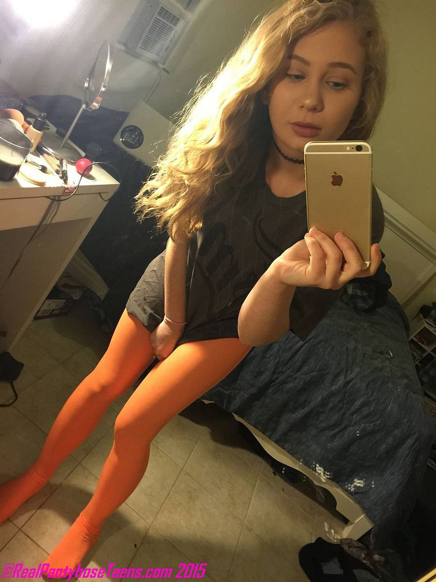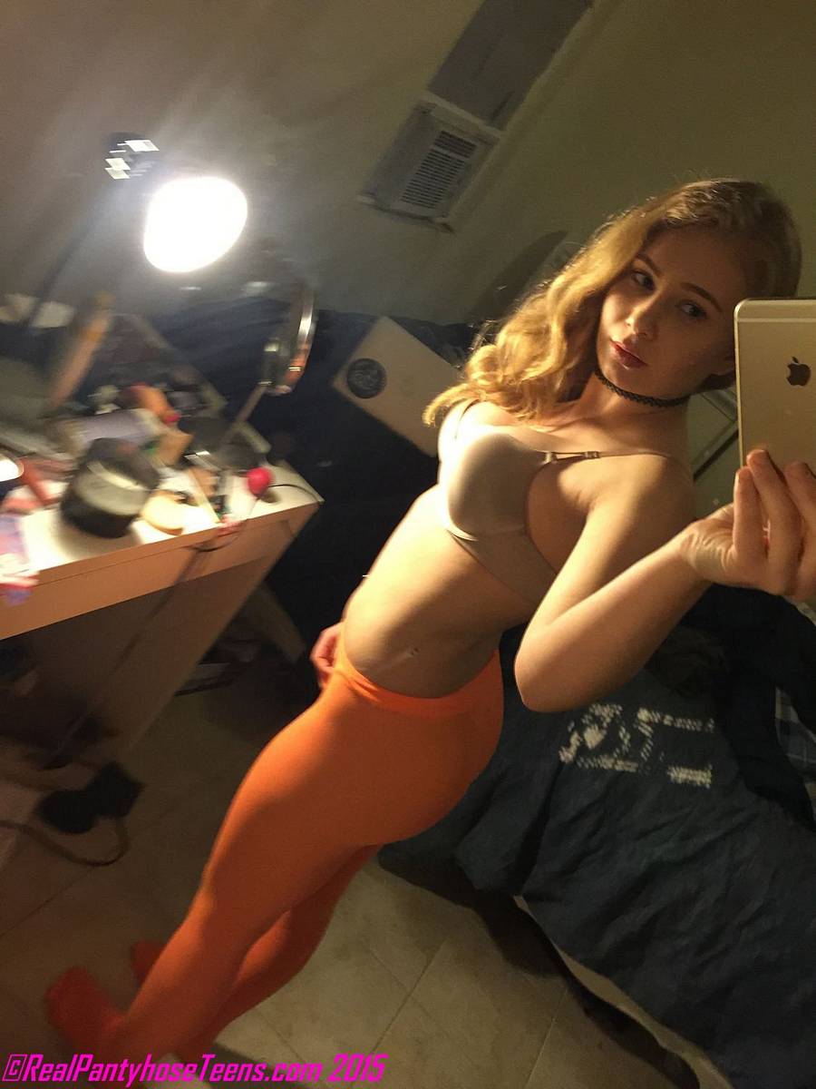 Chanel is looking very hot and sexy as she takes some selfies for us while wearing a leotard and orange pantyhose. This series from REAL PANTYHOSE TEENS has been very popular and we’re hoping that Bob is able to recruit some more beautiful models to join in on it in the near future. Chanel takes some shots of her curvy frame in her leotard, showing off some decent cleavage in the process. She slides the leotard off her shoulders to show off the bra she is wearing underneath… too bad she isn’t topless but we still can’t complain! Her ass is pretty sweet, don’t you think? Enjoy the free pictures and if you’d like to see more cute amateur models in sexy outfits and pantyhose, click the banner below to get instant access to Real Pantyhose Teens.