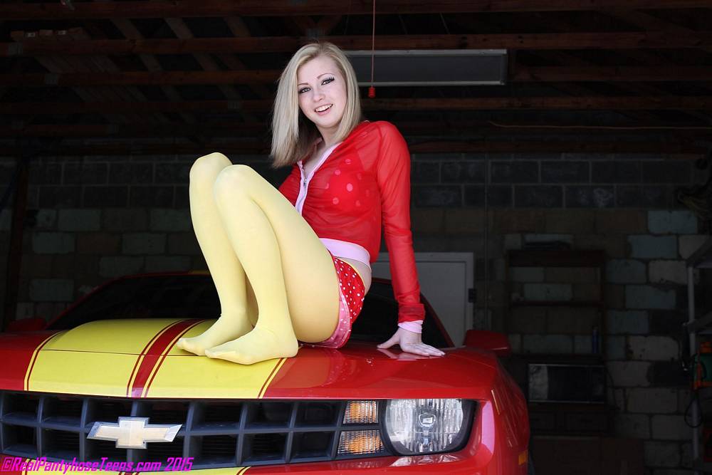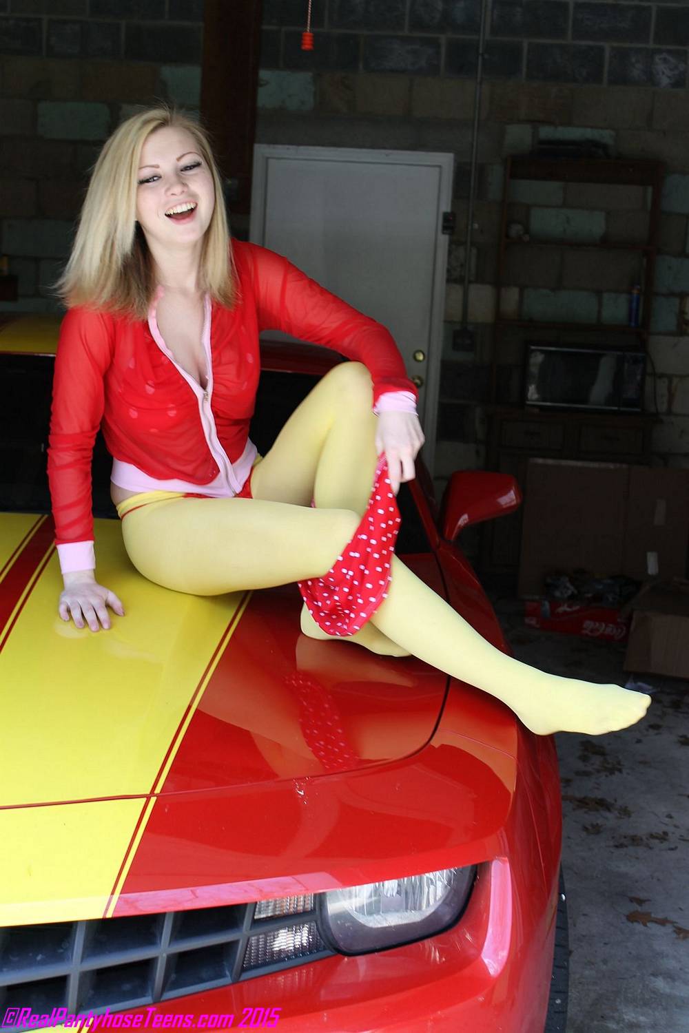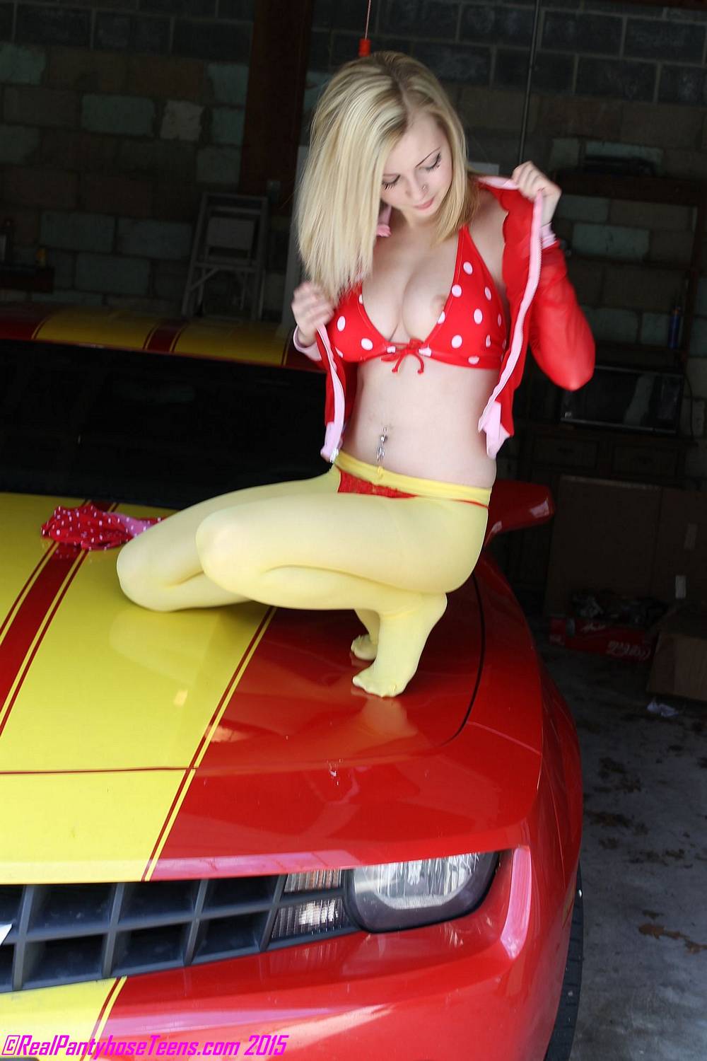Tori from REAL PANTYHOSE TEENS has been a real hit here at the blog so we’re very pleased to share another gallery with all you fine folks. This time around Bob managed to get her in his garage so she could roll around in a polka dot miniskirt with yellow opaque pantyhose on those sexy legs and feet of hers. When she starts stripping you’ll notice she put her panties over her nylons. Tori also shows off those big, beautiful tits by removing her bikini top. Damn close to perfect tits if you ask us! Enjoy the gallery and if you want to see more of Tori, visit Real Pantyhose Teens and get instant access to all of their amazing pictures and images. Enjoy!