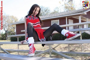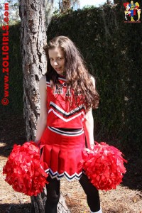 Ok, I think it’s safe to say that you folks are enjoying the galleries that I’ve been creating and sharing of Sarah from ZOLIGIRLS. Yes, this teen model is cute and sexy so I completely understand that. The fact that she has a nice, slim frame and killer legs is probably part of the appeal as well as her air of mischievnous. Check out this beautiful young lady as she once again dons the cheerleader uniform, this time with socks and black opaque pantyhose. When Sarah bends over you’ll notice that she seems to have forgotten to wear her panties again… silly girl. She also shows some of her moves and flexibility, allowing us to look up her skirt and stare longingly at her incredibly hot legs. Enjoy the free gallery and if you’re a fan, leave a comment. I would love to know what attracts you to this cutie!