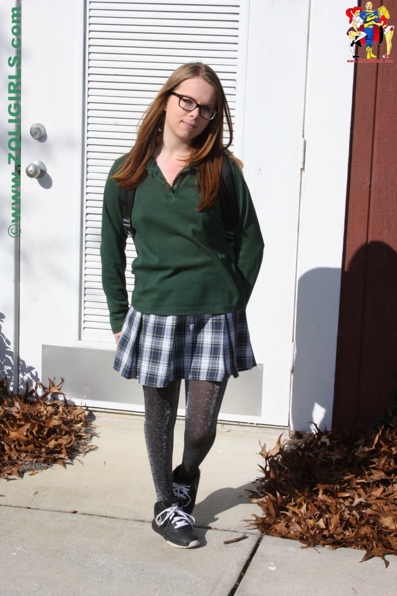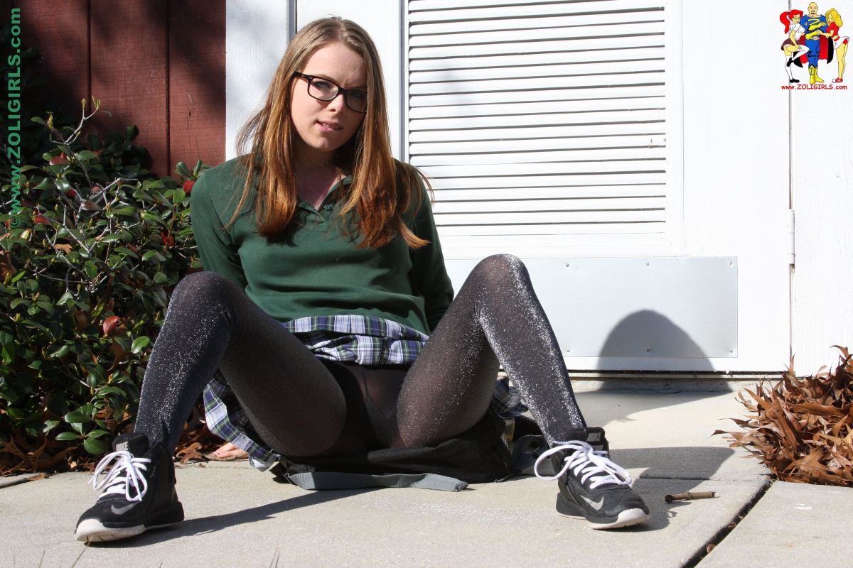 Welcome back to My Pantyhose Blog ladies and gentleman. Things have been a bit crazy around here lately and you may have noticed that some posts have been a bit late. Work demands have been pretty stressful so getting things updated, building galleries and having the crew get things done has taken a lot more time to prepare than I expected. I’m hoping that things will be back on track in the interim so please keep tuning in for more amazing pantyhose pictures and galleries. Today I have a new model from ZOLIGIRLS named Jenny Bliss and she is looking fantastic in her schoolgirl uniform that includes a short plaid skirt and green long-sleeved shirt. What most likely will catch your attention though is most likely going to be those beautiful legs in sparkling opaque pantyhose. How amazing do they look?
