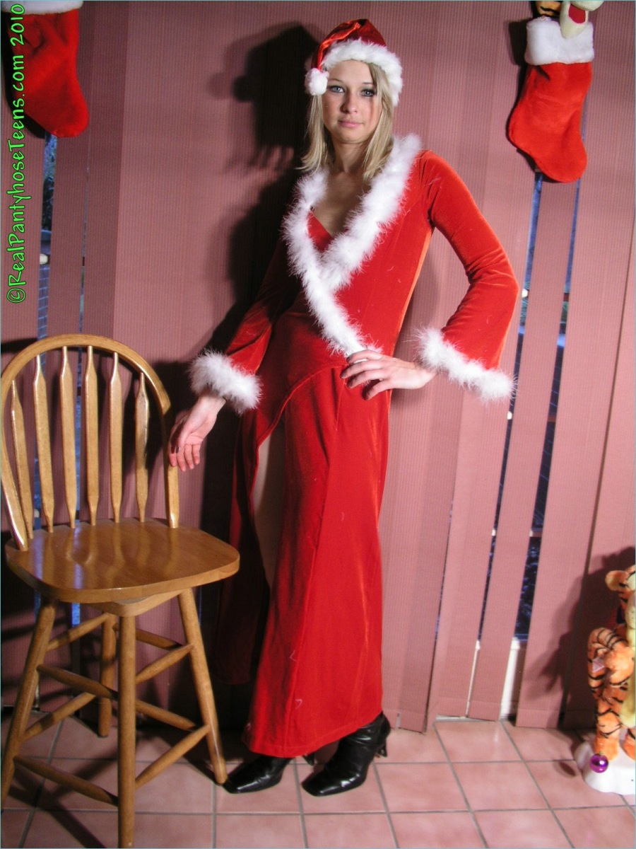 Merry Christmas everyone! Katie as Ms. Claus in white pantyhose