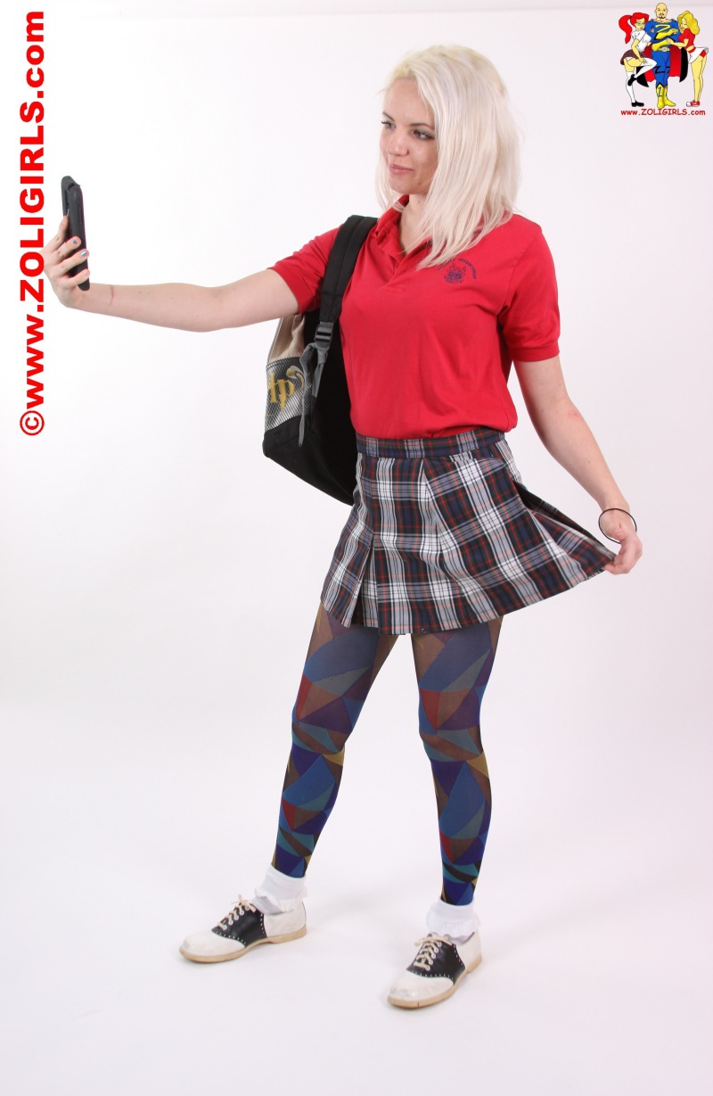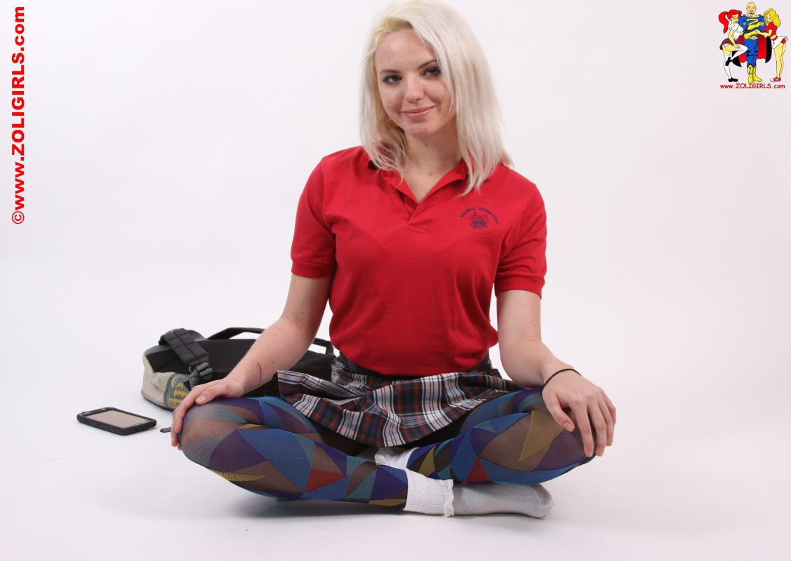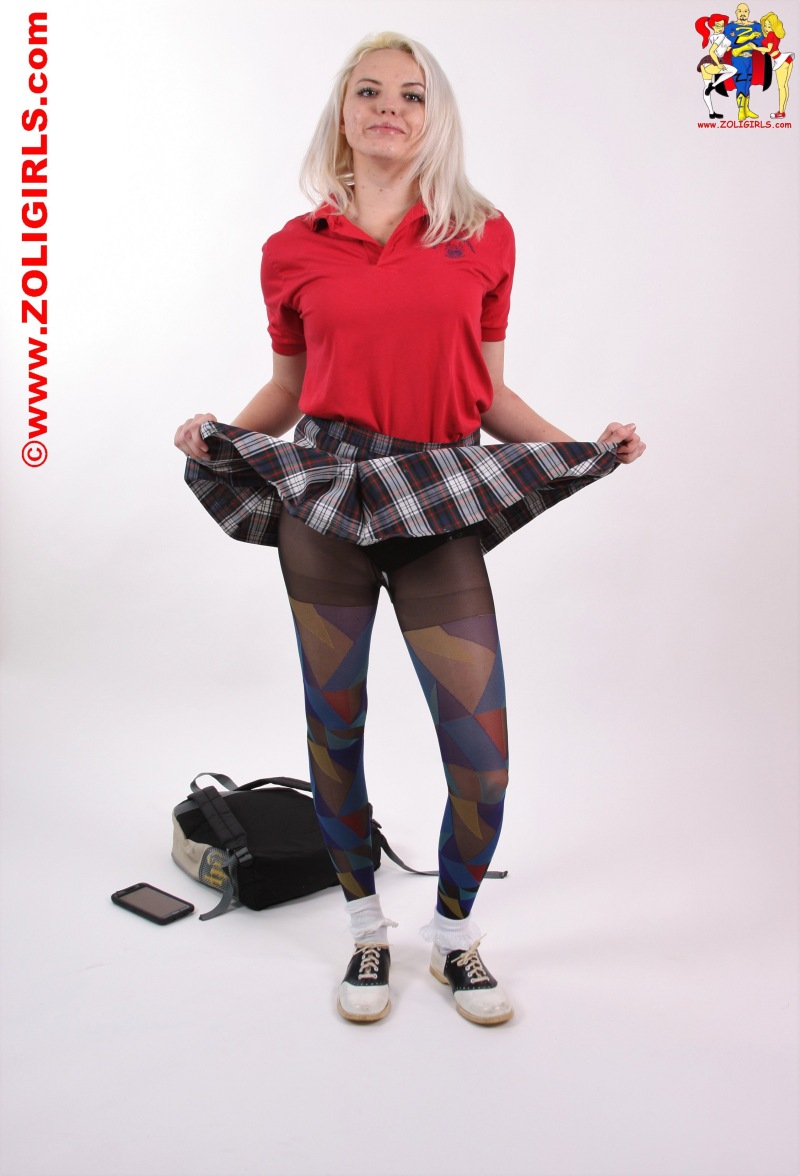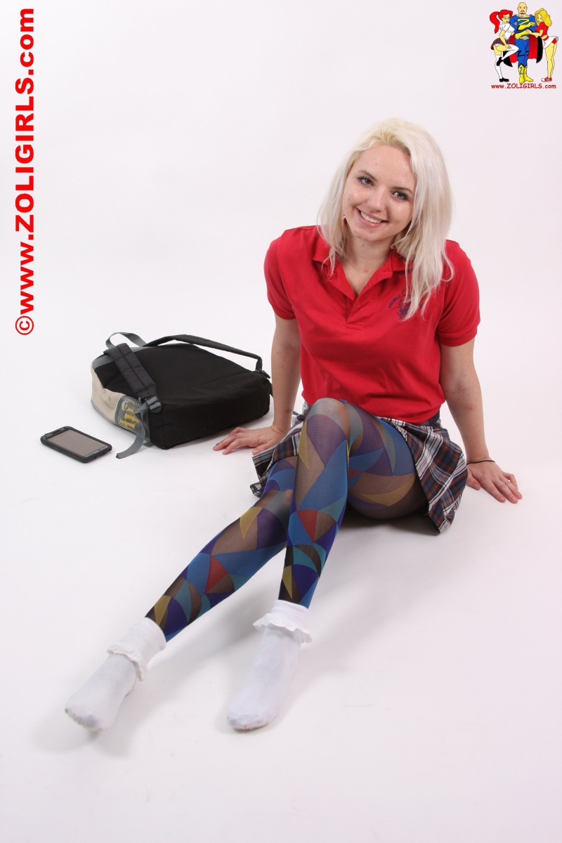 Well folks we’re back with some new posts from ZOLIGIRLS, one of the top uniform and pantyhose fetish sites around. We have a cute teen pantyhose model by the name of Jenna to share with you and she is looking very cute and sexy as she poses in her schoolgirl uniform with patterned pantyhose on those lovely legs of hers. This sweet petite girl flashes that lovely smile as she teases us mercilessly in her hose and school uniform. If you like these sample pictures, you have to check out the full image update available over at Zoligirls. Enjoy!