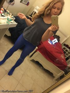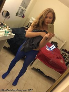 The folks over at REAL PANTYHOSE TEENS have done a great job of adding pantyhose selfies to their regular updates and its something that we really have enjoyed seeing. One model that we always enjoy seeing in front of the mirror with phone in hand is Chanel, a petite amateur girl that has also appeared in some regular updates at the site as well. In these free images from RPT, Chanel is posing in nothing but a pair of blue opaque tights and a t-shirt. Her top is quickly pulled off and Chanel poses in her bra and pantyhose. Don’t those small teen tits look amazing encased in her pink lace bra? Enjoy the free gallery and if you’d like to see more of this cutie and other amateur models in sexy outfits and pantyhose, head on over to Real Pantyhose Teens today!