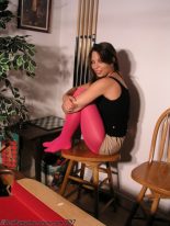We have another fantastic gallery from Bob over at REAL PANTYHOSE TEENS and features the sexy Korri. She’s been one of the more popular models over at the site and absolutely loves to show off her curves, legs and feet to all her adoring fans. In this particular gallery Korri is posing for us in a miniskirt with a black top and shiny pink opaque pantyhose. There’s no shoes so you get to see her sexy feet in nylons right off the bat. Korri takes off her top to expose her breasts in a tiny bikini top. The miniskirt gets removed next allowing you to check out that curvy ass of hers. She does a handbra pose to finish things off… what a tease!