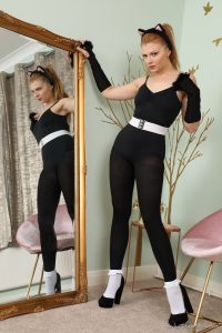 Scarlett Foxett as a cute kitty in a leotard and black opaque pantyhose