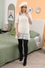 I’m so glad Asha Evans returned to the studios of one of my favourite sites as the sets that she shot are simply amazing. This free gallery was created from one of her recent updates at ONLY OPAQUES and has this sexy blonde posing in a minidress with high heels and black opaque pantyhose. Those glasses and the beret are a nice touch, giving her a smart and sexy vibe as she poses for us in the bedroom. Asha does an incredible job of showing off her amazing legs in tights to get our attention, doesn’t she?