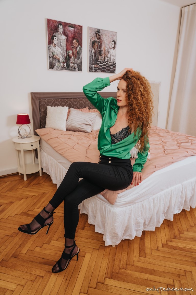Rose M sits on the side of the bed with her legs crossed at the knee, showing them off in her tight pants with a hint of her nylons she is wearing under them around her feet and ankles. She starts her strip tease by removing her top and showing off her small tits in a lace bra. Rose starts sliding off her pants to tempt us with her beautiful ass in panties and pantyhose before slipping her shoes off her cute feet to remove them entirely. The bra comes off as well leaving this hot babe topless and revealing her small, adorable tits. I hope you’ve enjoyed this free gallery and if you’d like to see more of Rose and other beautiful babes in sexy outfits and pantyhose, click HERE for instant access to OnlyTease today!