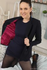 The gorgeous Zuzanah is back to show off her long, lovely legs in this free gallery from ONLY SECRETARIES. She is wearing a secretary outfit that includes a blue blazer over her tight blue minidress. She is also wearing a pair of high heels and black pantyhose on those incredible legs of hers. Zuzanah removes her jacket and those strappy open toe shoes to give us a better look at those cute nylon-clad feet. Watch as she pulls the dress up over her head and shoulders to tease us in her bra and panties before reaching behind her back and removing her bra. Those tits look quite lovely, don’t they? Zuzanah finishes off her photo shoot by pulling down her nylons to give us a better look at those lace panties. If you’re a fan of sexy babes in secretary uniforms and pantyhose, I highly recommend you check out Only-Secretaries by clicking HERE!