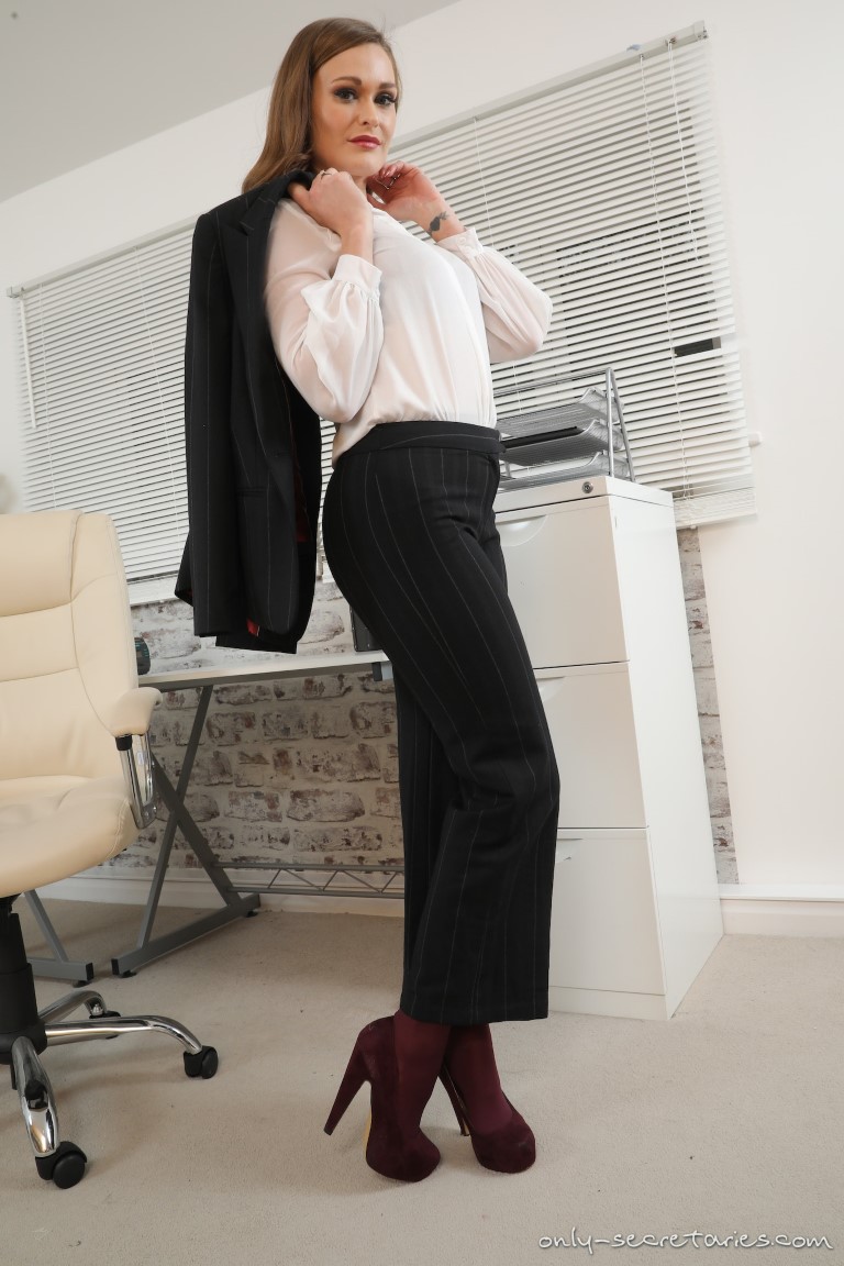 If you’re fan of Honour May, you’re going to love this free gallery from ONLY SECRETARIES. She has slipped into the role of sexy office babe wearing a pant suit and high heels over her burgundy coloured opaque pantyhose. At the beginning of the photoshoot you only get to see a little bit of the nylons but that view improves dramatically when Honour May removes her shoes and slides off her pants. The shot of her ass is pretty damn impressive! This hot leg model removes her jacket and blouse to show off her small tits in a red bra before removing that as well and posing topless for us. Want to see more of Honour May and other sexy models posing in their secretary uniforms and pantyhose? Click HERE for instant access to Only-Secretaries today!