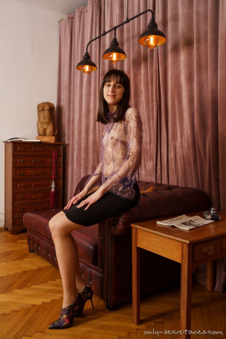 I am a huge fan of Zlata as I have confessed a few times before. This petite cutie is just one of those models that have me riveted every time I see her featured in an update. This free gallery from Only-Secretaries has her wearing an outfit that would get me terminated if she was my co-worker as I would probably just stare at her all day. She is wearing a mostly sheer top with a knee length skirt and oxfords. Her lovely legs are encased in sheer pantyhose and while you don’t get to see a whole lot of them at first, Zlata is more than eager to remove her clothing so you get a better look. Before you know it she is topless and teasing us with her small, adorable tits while wearing nothing but black panties and those tan nylons. Enjoy the free gallery and if you’d like to see more beautiful babes in secretary uniforms and pantyhose, click HERE for instant access to ONLY SECRETARIES today!