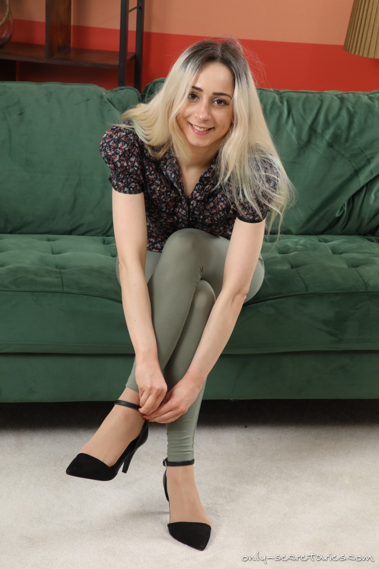 I have another fantastic hose under trousers gallery to share with you, this time of the tantalizing Tania Aresti. This beautiful glamour model is looking quite sexy in this free gallery from ONLY SECRETARIES posing for us in high heels, skin tight leggings and sheer pantyhose. Watch as she stands up from the couch after removing her shoes and slowly slides down her pants with her back to us. Inch by inch we see more of that glorious ass exposed in thong panties and nylons. Tania removes her pants and top to reveal the matching bra before sliding off her pantyhose. In the full update at Only-Secretaries, you get to see her put on different nylons. Can you guess what type they will be? Enjoy the free gallery and if you’d like to see more of Tania and other beautiful babes in secretary uniforms and pantyhose, click HERE for instant access to Only-Secretaries!