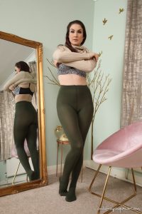 I have another free gallery from ONLY OPAQUES to share with you today, this time featuring Petra V and those killer curves of hers. She is posing for us in a cute sweater dress with a belt around her waist to highlight those lovely hips of hers. Petra is also wearing a pair of high heels and green opaque pantyhose on her long, shapely legs. This sexy glamour model is admiring her own beauty in the mirror while showing off a whole lot of leg. She pulls the dress around her waist to further tempt us with her brilliant ass in tights. Petra pulls the dress up over her head and reveals her ample cleavage in a tight fitting bra before finishing topless, exposing those nice, full tits to the camera. Want to see more of Petra and other hot models in opaque pantyhose and stockings? Click HERE for instant access to Only-Opaques today!
