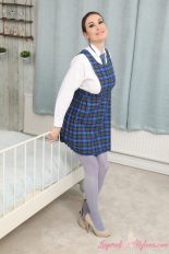 Thanks for dropping by My Pantyhose Blog once again today and for your viewing pleasure I have a free gallery of the lovely Petra V to share with you. These sample images are taken from one of her recent updates at LAYERED NYLONS and has her teasing in a cute college uniform that includes a blue plaid minidress over her white blouse and necktie. Petra is also wearing high heels and while the layers of nylons are not immediately clear, you get a better look at what is going on when she pulls the dress around her waist. Her legs have two layers of pantyhose, the first being sheer blue with white nylons over top of those. It creates a bit different shade, doesn’t it? Petra strips for the camera until she is topless in her panties and those sexy pantyhose. Enjoy the free gallery and to see more sexy babes in layered pantyhose, click HERE for instant access to Layered-Nylons!