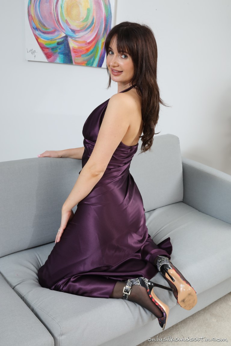 Thanks for dropping by My Pantyhose Blog today and for your viewing pleasure I have a free gallery from OnlySilkAndSatin of the gorgeous Gina B to share with you. She is posing for us in a long purple evening gown with a pair of high heels and sheer black pantyhose. You get to see a whole lot of her legs are well as that beautiful ass in nylons when she pulls the dress up around her waist. Gina removes her open toe high heels and shows off those sexy feet in pantyhose before slipping out of her dress and posing topless in her panties and nylons. Wouldn’t you just love to be able to join her on the couch? Want to see more of Gina B and other beautiful babes in sexy outfits and pantyhose? Click HERE for instant access to OnlyAllSites today!