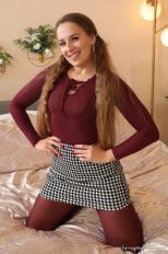 Here is a free gallery of the marvelous Monika Lara Smith from Only-Opaques for you to check out today. She is teasing us in a tight patterned miniskirt with a pair of white high heels. Her burgundy top matches the burgundy opaque pantyhose she has on those sexy legs of hers. Monika pulls the skirt up to show a bit more of her legs before presenting her nylon-clad ass to the camera. The striptease starts with this hot glamour model pulling off her shirt to reveal her yellow lace bra. The skirt soon hits the floor next leaving us with a killer view of her ass in the matching thong panties. To finish off her photo shoot, Monika removes her bra and teases us with those small, adorable tits. Want to see more hot babes in opaque pantyhose and stockings? Click HERE for instant access to OnlyAllSites today!