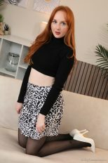 Here is another free gallery of beautiful redhead Miss Daphne Red from OnlyTease for you to check out. Feast your eyes on this sexy glamour model as she poses in a black crop top with a patterned miniskirt and a pair of high heels. Those amazing legs of hers are encased in black pantyhose and looking very sexy in the process. Daphne kneels on the couch and pulls the skirt around her waist, giving us a really nice look at her sexy ass in nylons. She pulls off her top and pulls down her patterned bra to show off those lovely tits. The skirt comes off next and as she removes her high heels, she is sure to do a nice toe dangle to tease us a little more. I hope you’ve enjoyed this free gallery and for more beautiful babes in sexy outfits and pantyhose, click HERE for instant access to OnlyTease today!