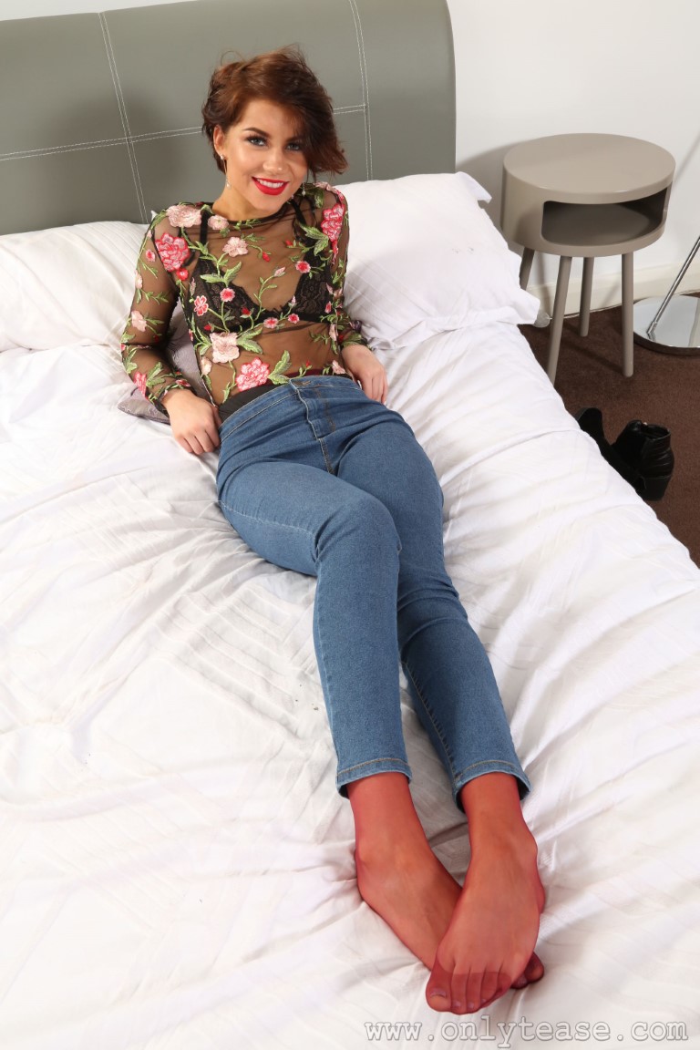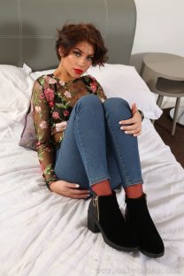Thanks for stopping by My Pantyhose Blog and for here’s another free gallery of the beautiful Zoey King from the archives of OnlyTease. You can see that she has a much different look from the last gallery I shared, choosing a short hair style instead. She is posing for some hose under trousers pictures for us wearing a sheer top over her black bra and a pair of black boots. Tight blue jeans over her coloured nylons gives us that jeans over pantyhose look I know a lot of you really enjoy seeing. Zoey removes her boot to show off her nylon-clad feet before peeling off her pants and the sheer top to tempt us in her matching bra and panties. The bra comes off and Zoey finishes her shoot topless, showing off those perky tits of hers. Enjoy the free gallery and for more hot babes wearing blue jeans over pantyhose, click HERE for instant access to OnlyTease!