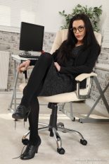 If you are a fan of the beautiful Antonia Jay, you’re going to love this free gallery from Only-Opaques. She is posing at the desk in a sexy secretary uniform that includes a minidress and oxford shoes with black opaque pantyhose. This hot office girl removes her jacket to give us a bit better view of her cleavage before sliding the dress off her shoulders and pushing it down to her hips. She is wearing a red lace bra and once her dress is removed, if you look closely at her ass you will see the matching panties under those black tights. Her bra comes off leaving this sexy babe topless. If you want to see more of Antonia Jay and other beautiful models in secretary uniforms and opaque pantyhose, click HERE for instant access to OnlyAllSites today!