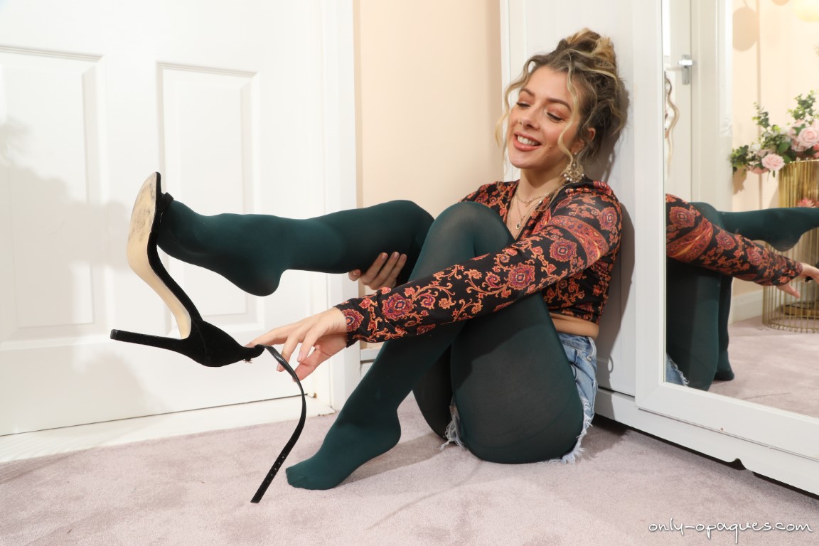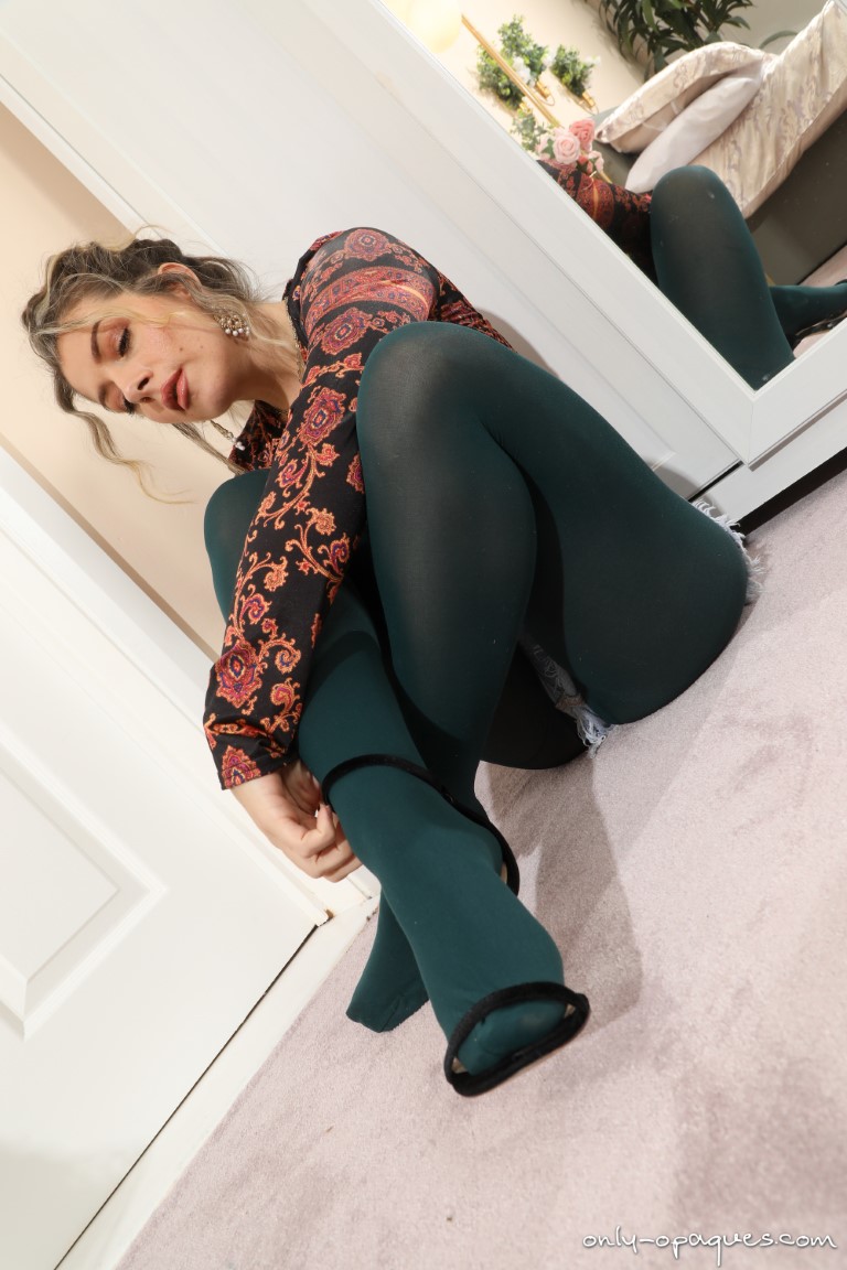 Thanks for stopping by My Pantyhose Blog and for your viewing pleasure today I have a free gallery of Tillie from Only-Opaques to share with you. This beautiful babe is teasing in jean shorts with open toe high heels and green opaque pantyhose. The jeans are nice and short, giving us a really nice look at her beautiful ass. She has her shirt tied up around her breasts to highlight them and get us eager for Tillie to get naked! This hot babe doesn’t make us wait all that long, removing her shorts and top so we can check out those beautiful tits of hers. Are you a fan of beautiful models in opaque pantyhose? You can see more of Tillie and other sexy babes over at OnlyAllSites by clicking HERE!