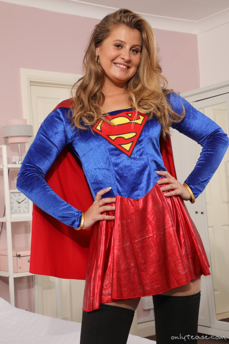 Thanks for stopping by My Pantyhose Blog and for your viewing pleasure I have another free gallery of one of my favourite models – the lovely Lucy Ava. She is posing as SuperGirl in this free gallery from OnlyTease wearing the famous blue and red outfit with amazing black thigh high boots over her sheer beige pantyhose. Lucy sits on the bed and pulls the outfit up, flashing her pink panties at the camera in the process. The costume then comes off entirely to reveal the matching pink bra. This cutie tempts us with that beautiful ass inher thong and nylons before removing her bra and drawing out attention to her tantalizing tits. Want to see more of Lucy Ava and other sexy models in costumes and pantyhose? Click HERE for instant access to OnlyAllSites today!