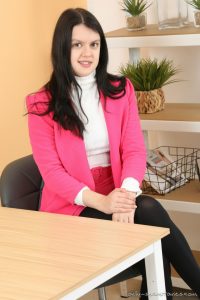The adorable Kelsey is posing as a cute office girl in this free gallery from Only-Secretaries. Her secretary uniform includes a pink jacket with a matching miniskirt and high heels. Those amazing legs of hers are covered in black opaque pantyhose and she finishes off her outfit in a white long sleeve turtle neck top. Kelsey starts shedding her clothes while posing at her desk until she is down to her black bra, panties and tights. With her back to us this cutie removes her bra and then turns around to show off those cute tits of hers. Want to see more of Kelsey and other beautiful models teasing in secretary uniforms and pantyhose? Click HERE for instant access to OnlyAllSites!