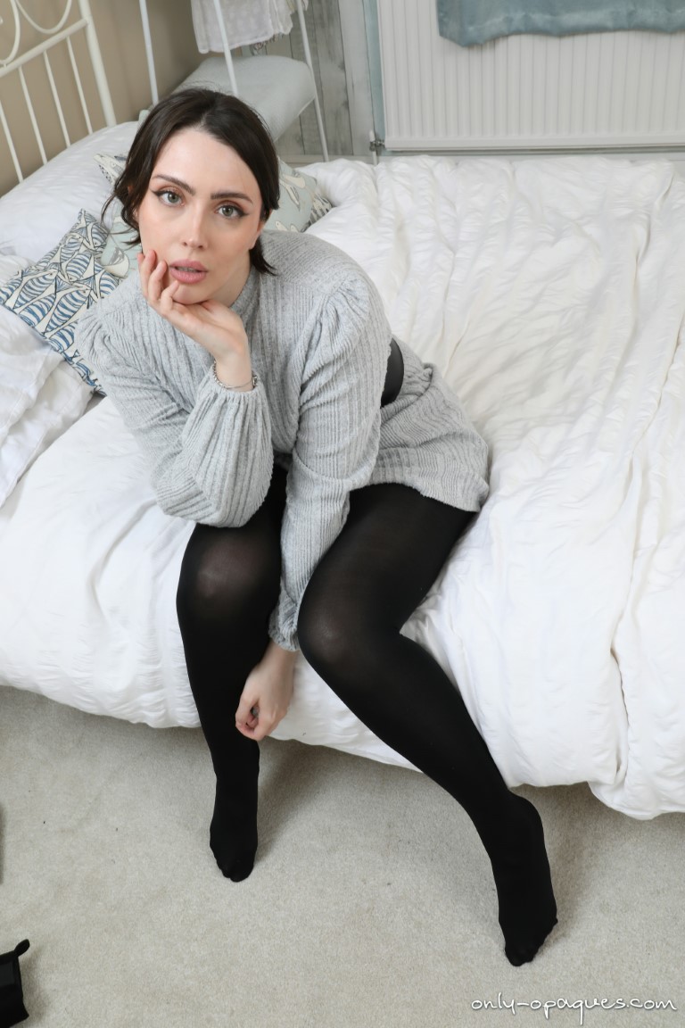 The lovely Little Miss Fox is teasing in the bedroom in this free gallery from Only-Opaques. She is posing in a grey minidress with a belt around her waist, highlighting those amazing curves of hers. Missy is also wearing a pair of black boots with black opaque pantyhose on those beautiful legs. This cutie sits on the side of the bed to show them off before relaxing and pulling up her dress, exposing her upper thighs in tights. The boots come off and then she slowly pulls off her dress, teasing us before eventually exposing her bra and panties. Her bra does come off but she decides to hide those cute adorable tits of hers behind a hand bra pose. Enjoy the free gallery and if you would like to see more of Little Miss Fox and over 1,000 other hot models in pantyhose, click HERE for instant access to OnlyAllSites today!