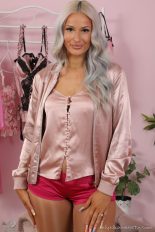 The beautiful Paige F is showing off her legs and cute ass really well in this free gallery from OnlySilkAndSatin. Her outfit includes a satin shirt and undershirt that really look more like lingerie. High heels, shiny beige pantyhose and those tight pink booty shorts look amazing as well. Paige turns her back to see how well those shorts fit and tease us with her amazing ass. The shoes come off and she presents her feet to the camera before removing her top and shorts to pose in her bra and panties. This hot glamour model finishes topless but hides her tits in a hand bra pose. Would you like to see more of Paige and other beautiful models in lingerie and pantyhose? Click HERE for instant access to OnlyAllSites today!