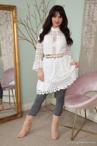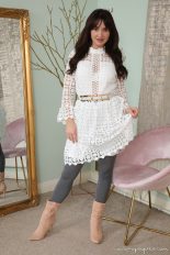 Sexy glamour model Gina B is looking quite lovely as she poses in front of the mirror in this free gallery from Only-Opaques. She is wearing a white lace minidress with a pair of boots and grey opaque pantyhose. The boots come off first and Gina extends her legs in the air, not only showing off her feet in tights but also giving us an upskirt look as well. Watch as she slides off her dress to pose in her matching white bra and panties before sliding the straps off her bra off her shoulders. Before you know it those lovely tits are exposed and we get quite the eyeful of them. Are you a fan of sexy models in opaque pantyhose and stockings? You get instant access to a massive archive of photo sets and videos over at OnlyAllSites by clicking HERE!