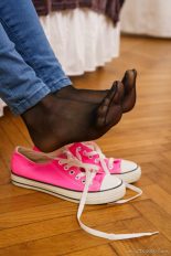 The lovely Lucie K is featured in this free gallery from OnlyTease and posing for some amazing hose under trousers pictures. This cutie is teasing in the bedroom wearing blue jeans and pink sneakers over her sheer black pantyhose. Lucie starts her striptease by removing her shirt and revealing her cute white and pink sheer bra. The jeans come off and give us a better look at that beautiful ass in the matching panties and black nylons. She then reaches behind her back and unclasps her bra to tease us with some amazing topless photos. Are you a fan of sexy babes wearing blue jeans over pantyhose? You can find some more amazing updates like this over at OnlyAllSites by clicking HERE!