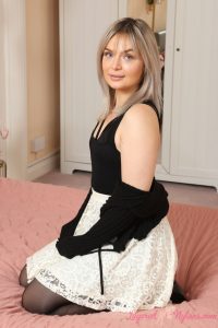 Cute glamour model Lexie Doll is teasing in the bedroom in this free gallery from Layered Nylons. Her sexy outfit includes a black sweater over her tight bodysuit with a white lace skirt and black high heels. As for her nylons she is wearing sheer black pantyhose over stay up stockings. Lexie shows off her beautiful ass when she slides off her miniskirt. Watch as she unfastens her bodysuit and teases in her bra and panties before exposing those small, adorable tits. You can see more of Lexie Doll and other hot models teasing in pantyhose and stockings over at Layered-Nylons by clicking HERE!
