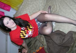Sexy teen model Elizabeth from Real Pantyhose Teens takes off her shorts to pose in her bra, panties and sheer pantyhose Continue Reading