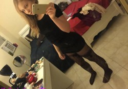 Pantyhose selfies of Maria Marley in her minidress, boots and opaque pantyhose